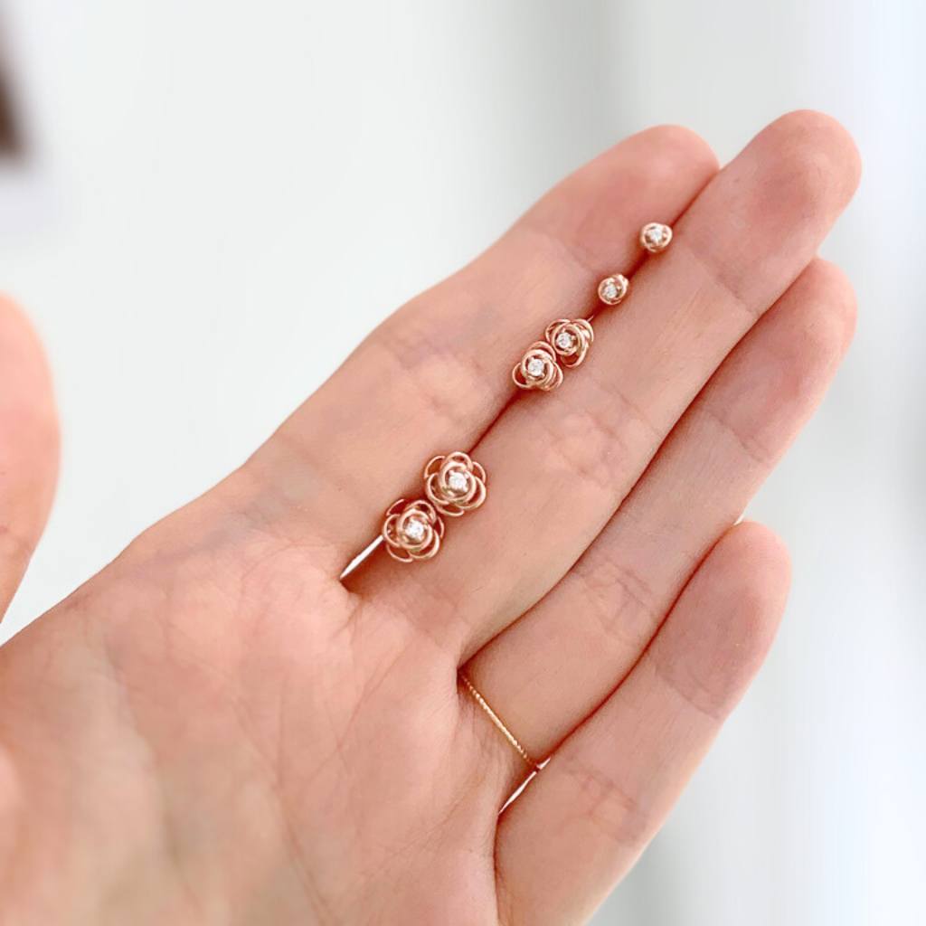 Make a subtle statement. Our earrings have been crafted with precison to represent the different stages of growth of a rose flower. Set with cubic zirconia stones as the pistil for a distinctive finish. Wear these solo or in addition to a more bolder earring for contrast.